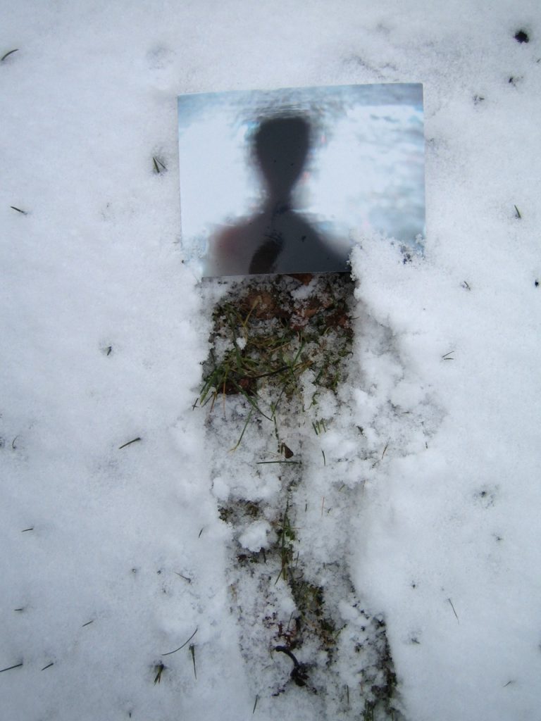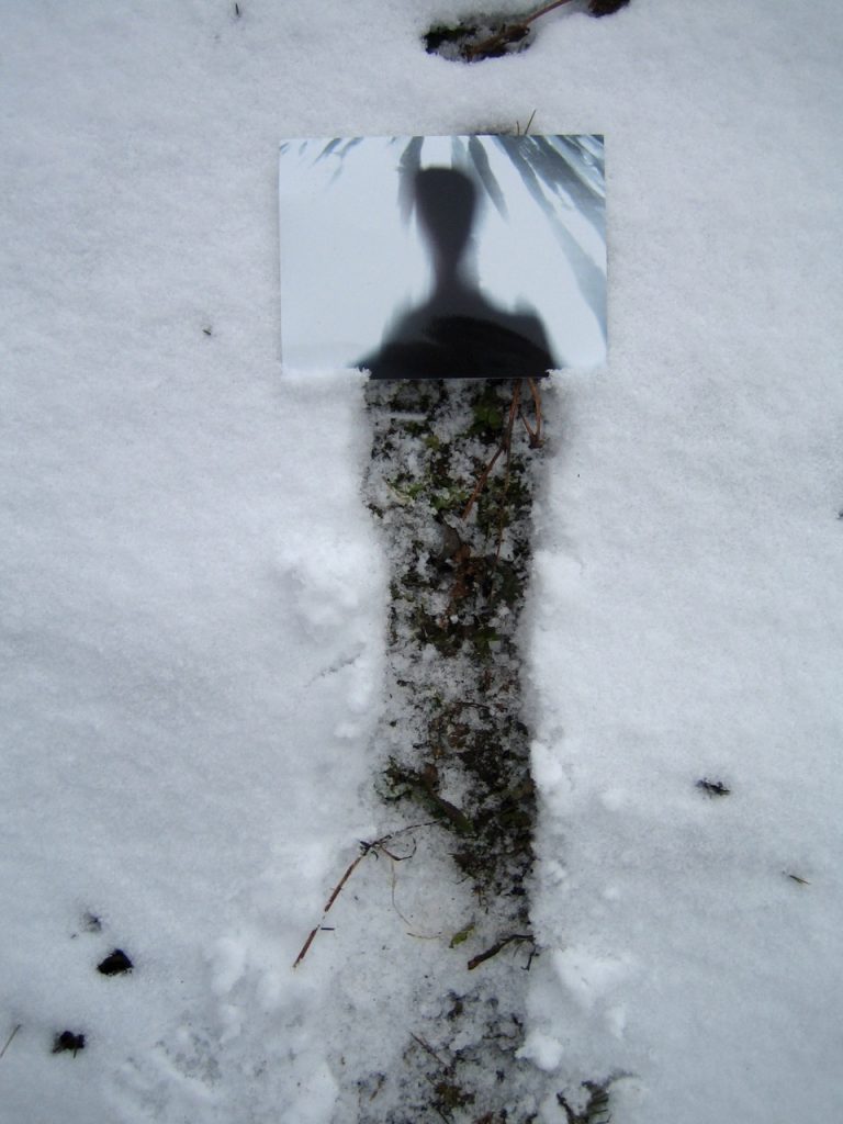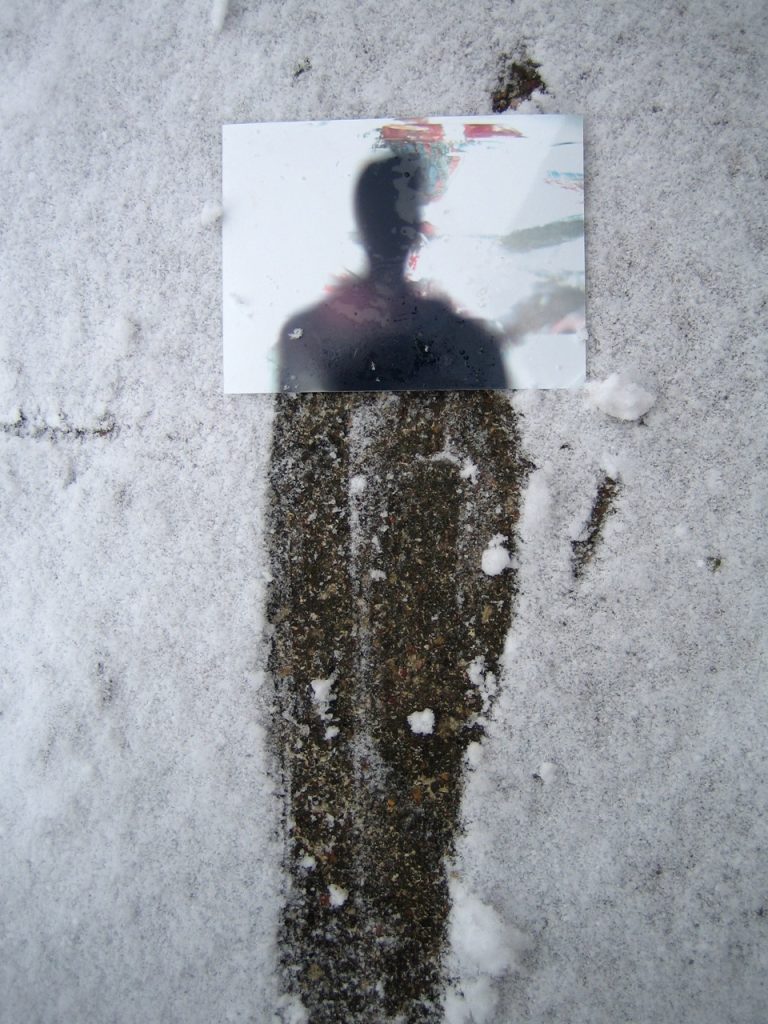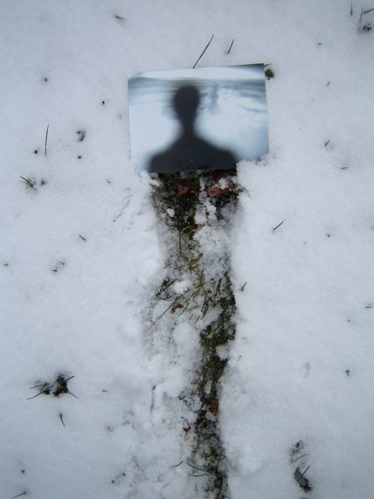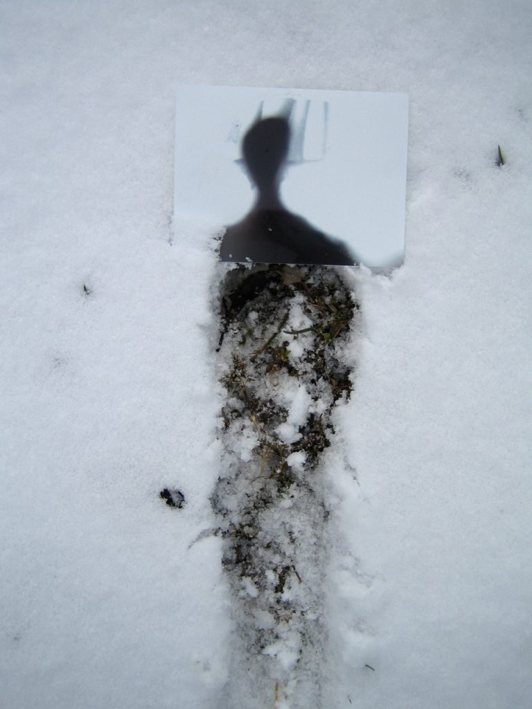 tracer un signe dans la neige avec un baton trouvé là poser une image