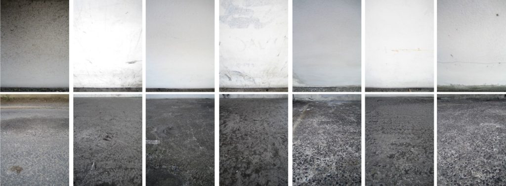 Pour chaque diptyque les prises de vue se font au même endroit, avec la même procédure, une image du sol et une image du mur.